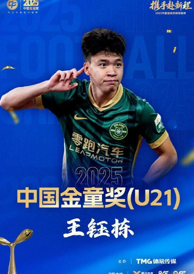 恭喜王钰栋,继上赛季中超最佳青年球员之后,今天又拿下重磅大奖,中国金童奖,这也是中国足坛历史上第4位同时获得单赛季中超最佳新人和中国金童奖2大奖项的球员,前3位都没有留洋,希望王钰栋未来能开创先河。